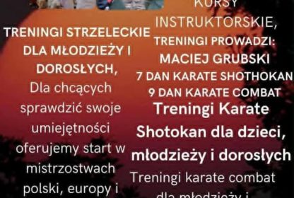Oss! Już od 03.09.2025r. zapraszamy wszystkich chętnych, chcących nauczyć się walki w kontakcie bezpośrednim, operowania bronią palną, nożem, pałką teleskopową, pałką typu tonfa, technik przetrwania. Oferujemy także udział w rywalizacji sportowej w kumite combat semi i light contact.